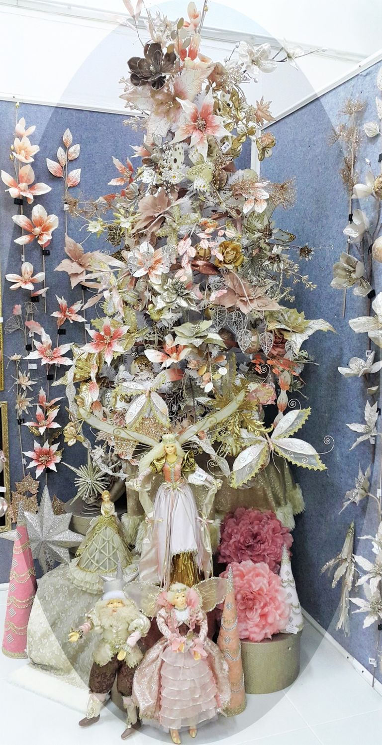 Drop Dead Gorgeous: We decorate this tree with anything but round ornaments. Inspired by geometric shapes and futuristic concept, we created floral, ornaments, butterflies and dragonflies in Silver, Pewter, Dark Blue and Purple.